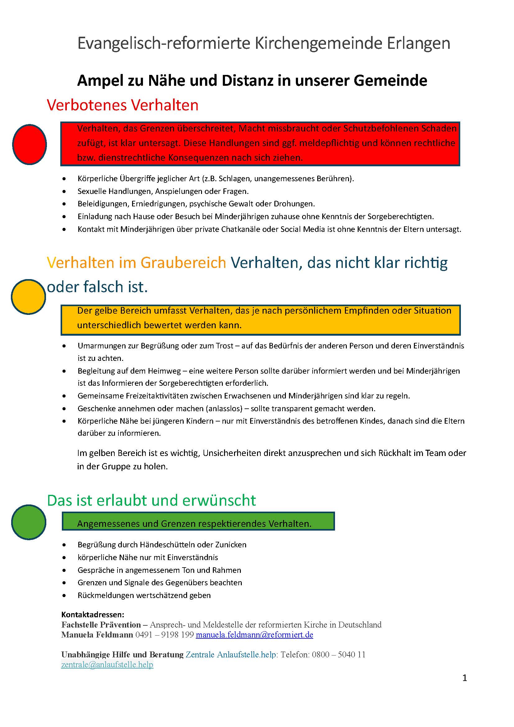 Die Evangelisch-Reformierte Kirchengemeinde Erlangen setzt sich aktiv für ein sicheres, wertschätzendes und vertrauensvolles Miteinander ein. Besonders in der Arbeit mit Kindern, Jugendlichen und Schutzbefohlenen ist es unser Anliegen, einen geschützten Raum zu schaffen, in dem sich jeder Mensch frei entfalten kann.