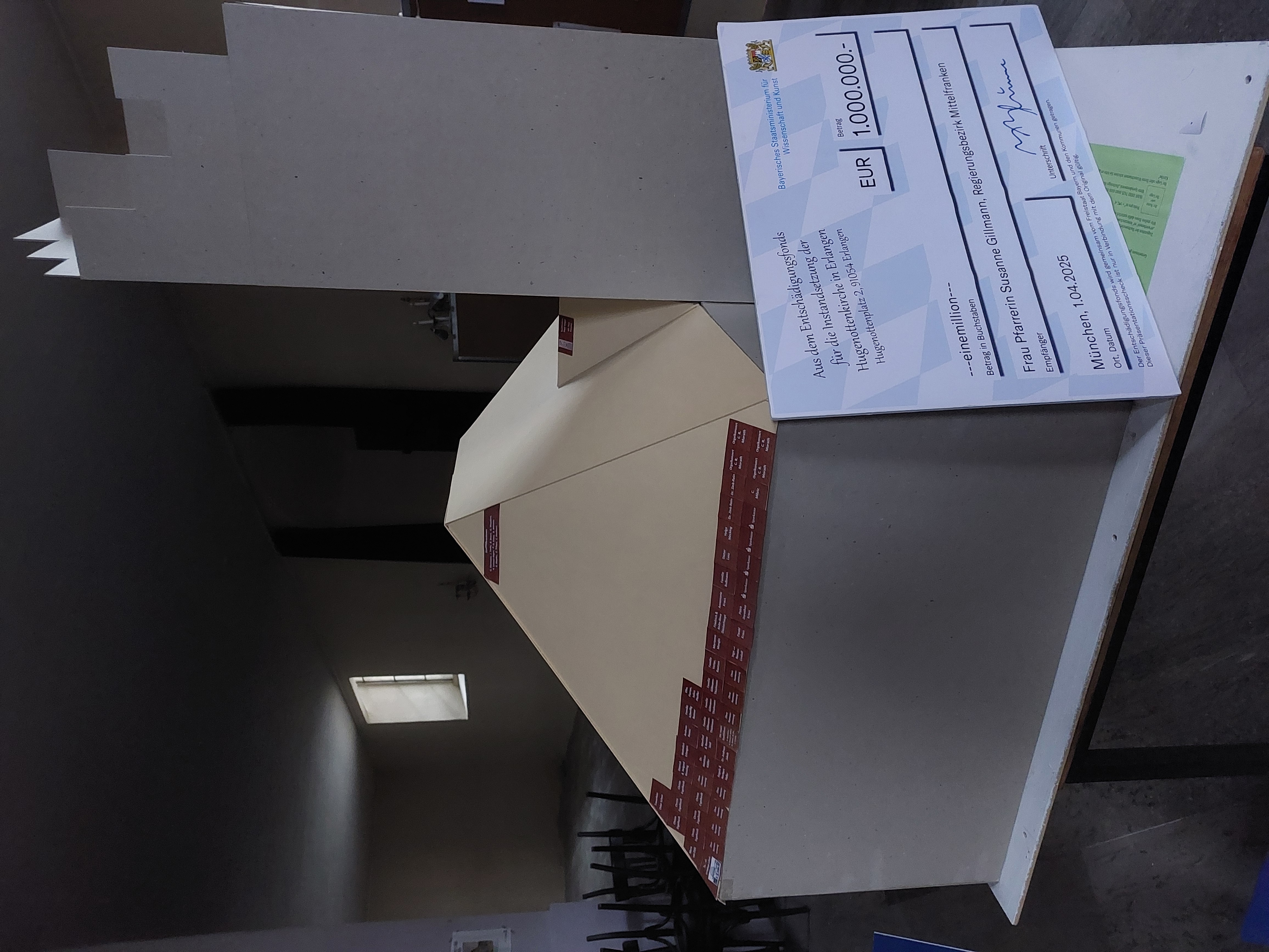 Unsere jüngste Aktion ist, für 195 € einen Quadratmeter Dach zu erstehen. Unsere wunderbare Pappkirche (Maßstab 1:33) lädt ein, dass Ihr Quadratmeter dann auch Ihren Namen bekommt. Kontakt: Daniel Drechsler